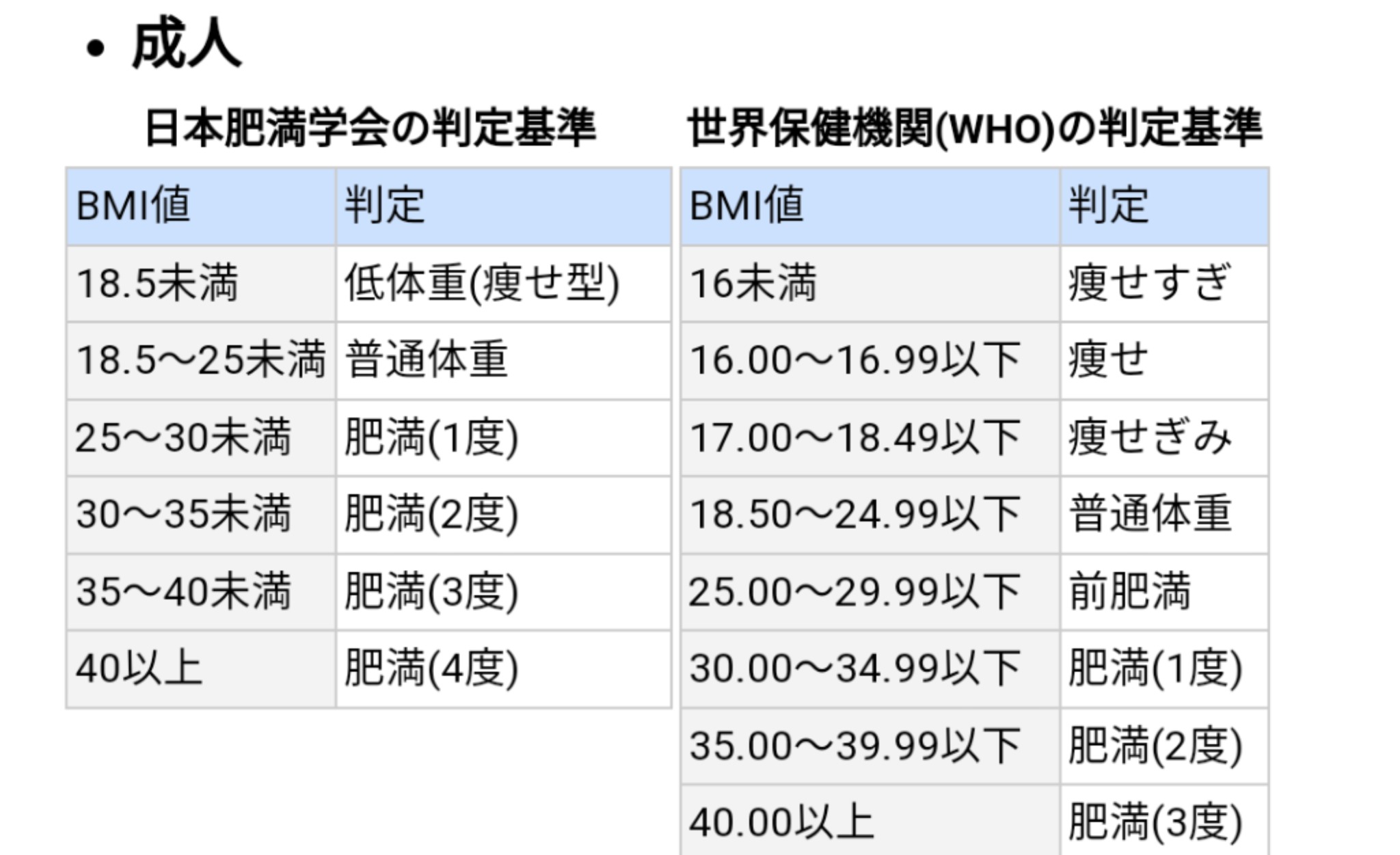BMI値、そもそもあまりに気したことがないので自分の数値を知らないのでネットで調べたら写真の基準がでてきました。